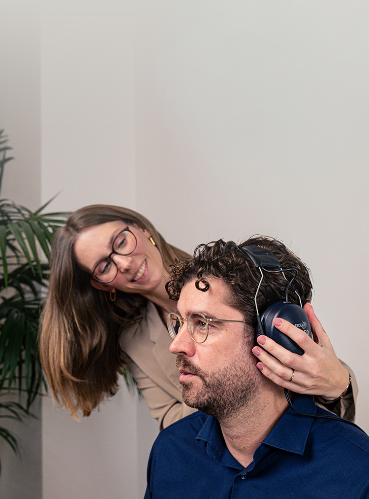 히어닷컴 청력 검사는 외이도 검사와 기도 청력 검사를 진행합니다. 외이도 검사는 청력 전문가가 밝은 조명과 확대경을 이용해 외이도와 고막 상태를 관찰합니다. 외이도가 막혔을 경우, 청각사가 고객님에게 이비인후과 방문 및 귀지 제거를 권유할 수 있습니다.