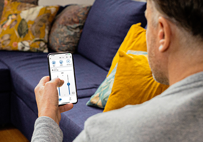 호라이즌 앱을 사용해 집중해서 듣고 싶은 방향을 설정하거나 보청기에 설정된 프로그램을 변경하고, 상황에 따라 볼륨을 조절하거나 청취 공간을 수동으로 조절해 보청기를 더욱 편리하게 사용할 수 있습니다.